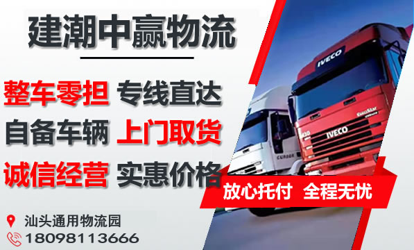 3、汕头到朔州物流专线价格优惠、运货及时,欢迎来人来电咨询汕头到朔州的物流价格、运费和报价等相关问题,建潮中赢物流将全力为您提供合理的运输方案。